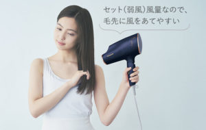 ミネラルマイナスイオンと高浸透「ナノイー」がキューティクルを引き締めて密着してくれるので、乾かす時に髪をケアしてくれます。