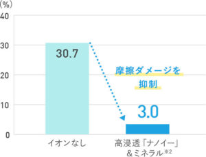 高浸透「ナノイー」がわずかな隙間から入り込んで、髪の表面だけではなくて内側にまで水分をたっぷり与えてくれます♪