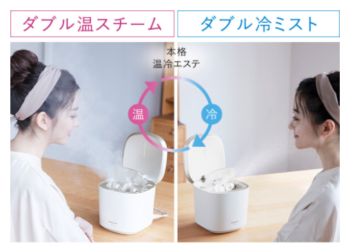 ここでオススメなのが、温スチームと冷スチームを交互にお顔に当てる「ダイナミック温冷ギャップ」